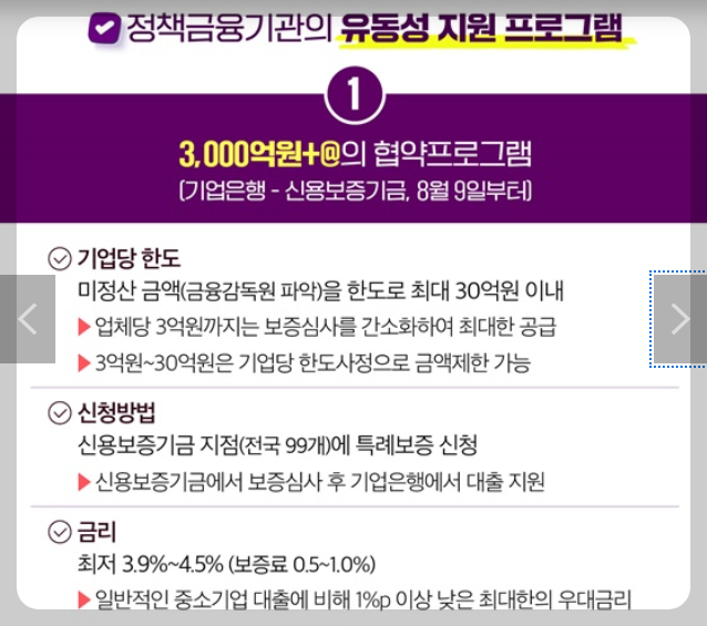 - 3,000억 원+@의 협약 프로그램: 기업은행과 신용보증기금이 8월 9일부터 제공하는 프로그램입니다.