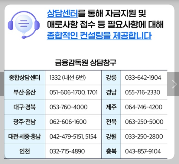 - 금융감독원 종합상담센터: 1332 (내선 6번)