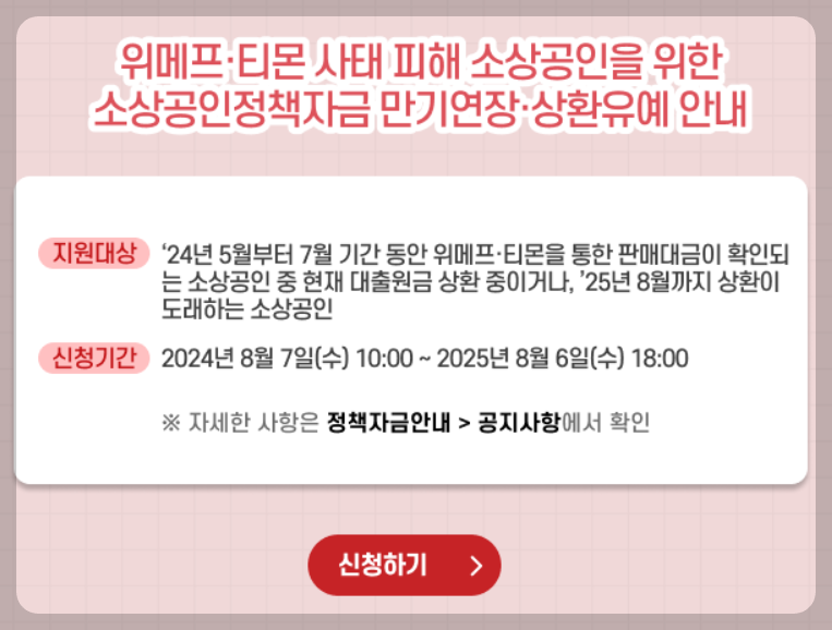 위메프와 티몬의 정산 지연으로 인해 많은 판매자분들이 어려움을 겪고 있는 상황에서, 정부와 관련 기관들이 마련한 다양한 지원 방안을 활용하셔서 조금이나마 경영에 도움이 되시길 바랍니다.
