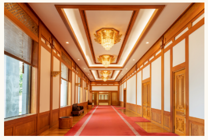 영빈관에는 대규모 행사장이 있지만 국빈들을 위한 숙박시설은 제공하지 않습니다. 국빈들은 환영 행사가 끝난 후 시내 호텔로 이동합니다.