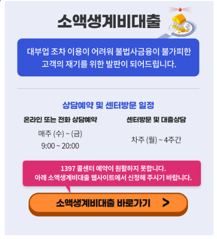 불법사금융이 불가피한 고객의 재기를 위한 상품(소액생계비대출, 소액생계비, 긴급생계비)