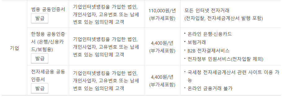 - 사용 용도: 온라인 금융 거래, B2B 전자결제 서비스, 전자정부 민원 서비스(전자입찰 제외)