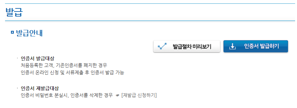 - 발급 대상: 개인 인터넷뱅킹 가입자(개인, 개인사업자, 임의단체)