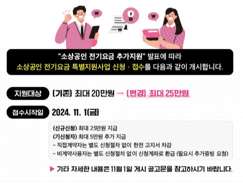 전기요금 특별지원 사업은 전기요금 인상으로 어려움을 겪는 소상공인들이 지속적으로 사업을 이어갈 수 있도록, 일정 금액을 지원해주는 사업입니다.