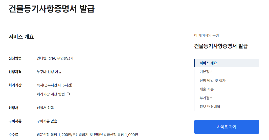 인터넷 발급 외에도 가까운 등기소나 주민센터를 방문하여 직접 발급받을 수 있습니다. 방문 발급 시에도 소액의 수수료가 부과됩니다.