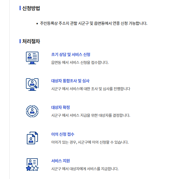 - 사회복지 담당 공무원과 상담 후 신청