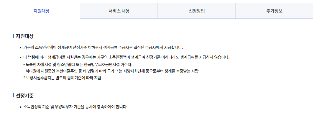 생계급여 신청 시 주의사항