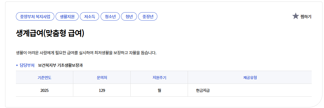 2025년 생계급여 신청자격