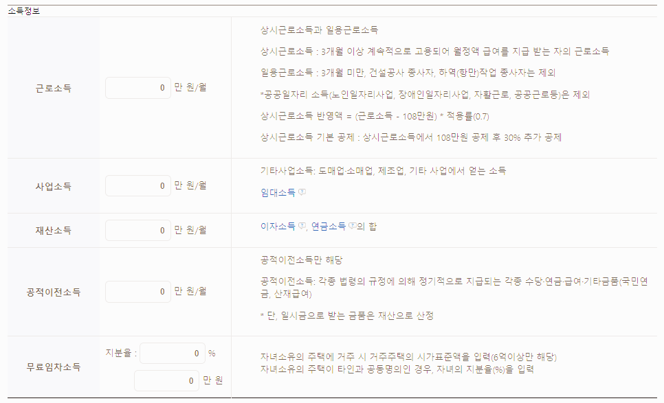 조회하실 때 기본적인 가족구성 및 월 소득, 보유재산을 입력하면 안내가 되므로 참고하세요.