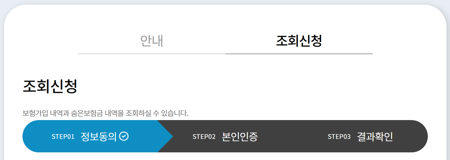 ※ 조회는 본인만 가능하며, 타인의 숨은 보험금은 조회할 수 없습니다.