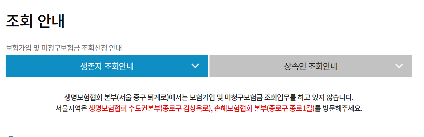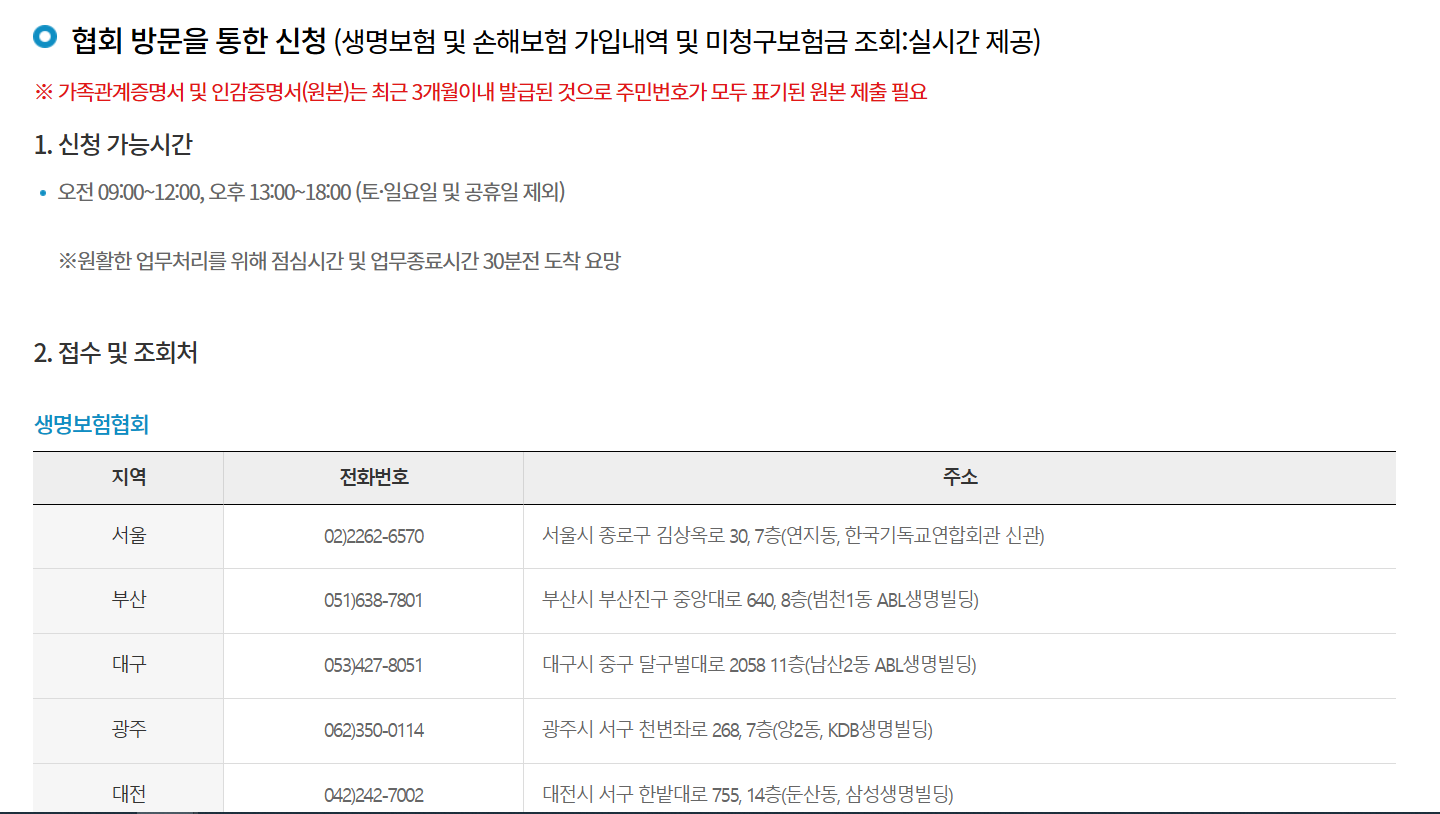 피상속인의 숨은 보험금도 조회 및 청구가 가능합니다. 단, 이 경우에는 내보험찾아줌 웹사이트에서 온라인 조회는 불가능하며, 각 보험사 또는 협회에 직접 신청해야 합니다.