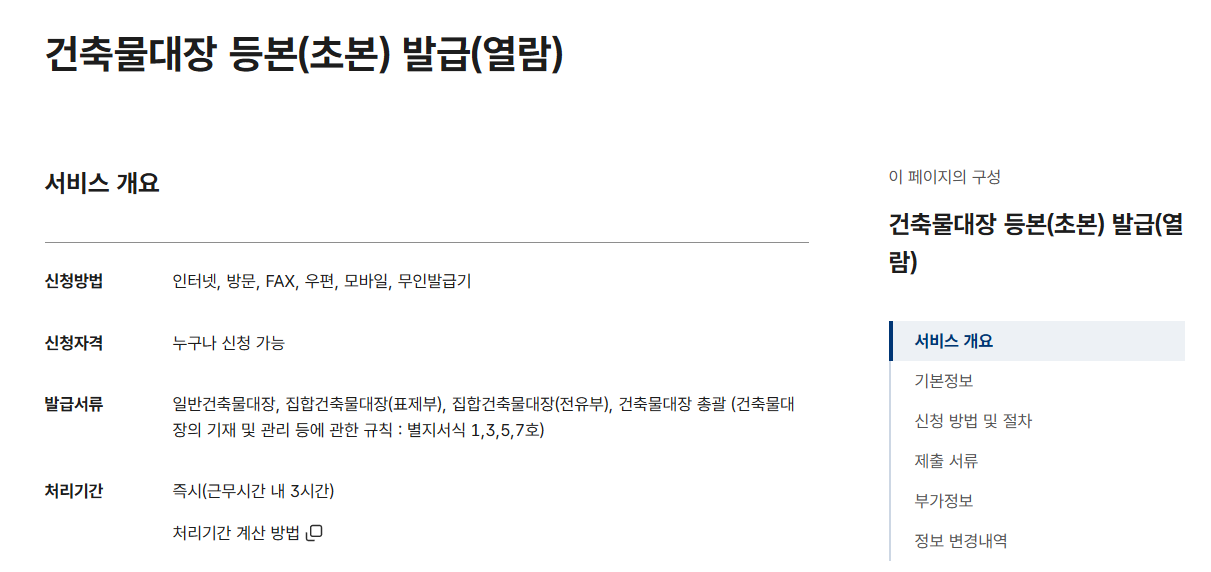 건축물대장 등본(초본) 발급(열람) | 민원안내 및 신청 | 정부24