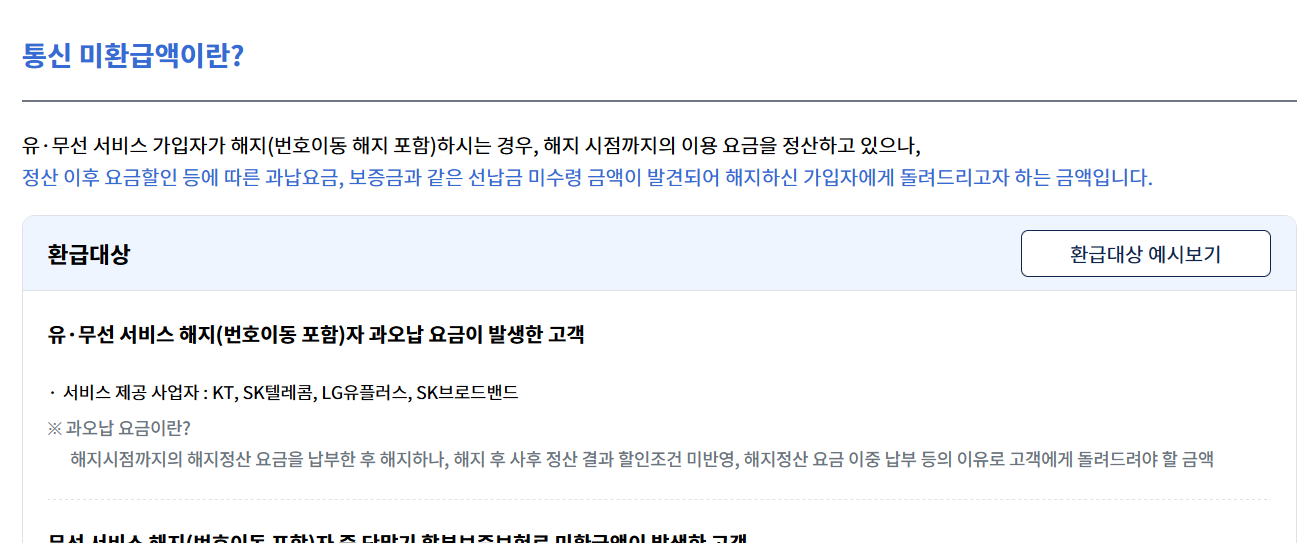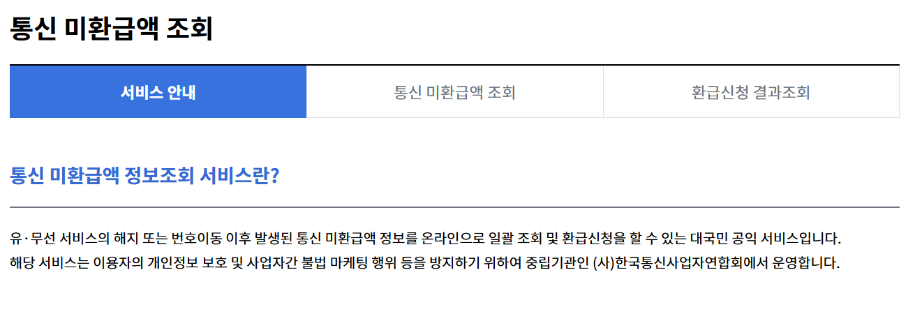 - 조회 결과를 통해 각 통신사별 미환급금 존재 여부를 확인할 수 있습니다.